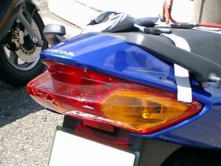 駐車場で取り回しているときに柱のボルトにぶつけてテールレンズに穴が開いた川!